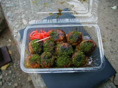 すこし小さめですが、10個入り400円(税込み)パックに溢れるくらい満員御礼です。