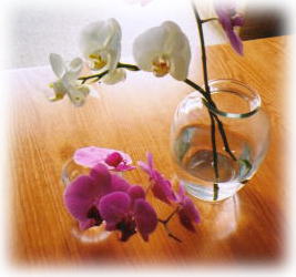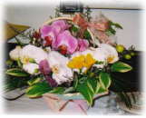 設計書もないし、材料も廃材もらってきたり、使わなくなった水道管使ってたり。柱建てたら窓がいっぱいできたからじゃ、ステンドグラスでパネル作って入れようって決めてみたり。 レンガも自分達で積んで、床板も張って、当然白い壁も塗って。お店の棚も扉も手作り。棚の取っ手は近所の人が余ってた木で作ってるのっ。でも絶対素人が作ったなんて分からない。職人さんにはわかるかもしれないけどね。 すごいセンスよくって、味があって、居心地がよい、そんなお店の出来上がりです。 歴史はお店に行って見てみてね。答えは奥様に聞いて下さいな。 そして胡蝶蘭。なんでこんなに長持ちするのか聞いてみました。だって、冬だったら3ヶ月くらい持ちますよー、って言われたらびっくりするでしょ。切花なのよっ。品種にもよるらしい。