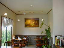 ![]() 「えっちゃんのバス日記」 バスの中は、井戸端会議の始まり始まりです。 皆さん知り合いばっかりらしく楽しい話が続きます。乗る方は、駅前で終わり。 後は、降りる人ばかり。おば様たちの病院や買い物のいわば足ですね。 景色は、左右にお店ばかり、団地を過ぎるとやっと車一台通れる道を バスは飛ばし、マスカットを一周して中庄駅に到着。最後まで乗る方はやはりめったにいないそう。電車で5分ですからねやはり。 南口のケーキ屋さん モアガーデン ![]() 北口のサンドリヨンは半年前に閉店(庭瀬店は健在) モアガーデン 10時〜19時 水曜日定休日 P 10台位 20席あり 中庄駅がきれいに改装されて少したってオープン。(平成8年10月26日) 最初南口はとっても寂しかった。倉敷高校と住宅と田んぼのみ。 このケーキ屋さんができてじょじょに他にお店もできて少しにぎやかになりました。 ![]() 家族で経営されています。ご主人は、シェフがぴったりの風貌です。奥さんすごく目が大きくてキュートです。モアガーデンと店名にあるように、小さなステキなお庭がありこころ安らぎます。ホッとする一角です。 ![]() コーヒー好きのご主人。コーヒーの量り売り ストレート10種類・ブレンド11種類、 とケーキ屋さんにしてはうれしい品揃え。そして、店内でも頂けます。 コーヒーのゼリーも自家焙煎で作られていて数種類あります。これからの季節おみやげ によろこばれるはず!もちろん自分で買うのもよし。日持ちするのでポイント高いです。 一個170円〜。フルーツゼリーもあるよ。(ピーチ、マスカット、オレンジ)230円。 ここのご主人アイデアマンです。倉敷をイメージしたお菓子を多数開発され発売されて います。 ネーミングも倉敷らしいです。蔵屋敷風パイ、倉敷浪漫ロールなど倉敷ロマン菓子シリーズがたくさんあります。 季節ごとにもオリジナル商品でます。ネーミングがなかなか難しいそうです。 今月中にはたこパイを出す予定。たこ、マヨネーズ、一味、チーズをブレンド。 パイにあうのかな?どんな名がつくのか楽しみです。 やはり、ケーキ屋さんですから一押しは窯出しシュークリーム 100円。 さくさくクッキーがシュー皮にのっていて、やわらかなシュー皮、ほんのりあまい カスタードクリーム入り。 ![]() 今シーズンの自信作を一つ頂きました。ご紹介します。 ブルーベリー味の皮にしろ餡をつつんだ水まんじゅう。いちご、黄桃メロン、透明寒天。見た目もとても涼しいそして、美しい。もっと冷たくして食べるとおいしさ倍増。 下には、生クリーム、抹茶ムース、栗入り。 300円なり。ここのケーキは、どのケーキもフルーツをふんだんに使っています。 このケーキ、和と洋が見事に合っています。ブルーベリーのいいにおいがします。 水まんじゅうが甘いですが、抹茶ムースでそのあまさを抑えてくれます。 いろんな食感が楽しみめます。 器もブルーでステキです。後に湯飲みに利用できます。 ケーキの予約もできます。オリジナルケーキは数知れずこなされています。 そして、オリジナルクッキーも作ってくれます。写真をもっていけばOK!一枚150円。 トメちゃんのクッキーがお店に飾ってありました。記念にいかがですか? 2〜3時ごろに行く・・と イギリスパンに出会えるかも一日限定7本。 ![]() 今回、仮名 フロランタ最中(桃)の名前を募集中。今月一杯で締め切り。 見事選ばれた方には、500円分の商品をプレゼントしちゃいます。 是非、どんどん応募してくださいね。 おわり |