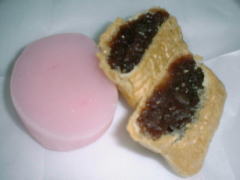 こちらのご主人は2代目になります。お店をはじめて50年。サラリーマンなどの経験はなくこの道ずっとだそう。若い頃にはほかのことをしたいと思った時期もあるそうですが、今振り返ってみると、これでよかったのだと思うとか。 こちらは児島千日通り商店街入り口から入って少しのところ左側にあります。車はここの近くにある「児島地下駐車場がもちろんベストなんですが、近くの路上も少しぐらいならOKでしょう。迷惑にならないようにマナーだけは守ってね。 ここの人気もやはり「いちご大福」。国産いちごしか使わないので6月半ばでおしまい。次は11月ぐらいからだよ。ここのいちご大福は何が違うかっていうと、おもちが抜群なんだって。かずちんが来た日はまだつくってたらしいけど売り切れになってたよ。残念。 写真のものは児島銘菓として知られる和菓子で ![]() 左が「すはま」 100円 おもちみたい。つきたてのようなやわらかいおもちで、素朴なほんのり甘い味付けがしてあります。 冷やして食べるとひんやりおいしいよ。 右が「塩かます」 110円 もなかね。つぶあんだけど練りつぶされたかんじで、つぶあんが苦手という方でも大丈夫かも。これはやっぱり甘いってかんじ。 どちらも1週間ぐらいは常温でも保存ができます。贈り物にいい ですね。 季節の和菓子は 100円から120円です。これからどんどん 夏バージョンにかわるよ。