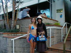 翌日5月5日自由行動。朝寝坊してゆっくりご飯を食べた。全快!! 昼前から、サーファーズパラダイスに繰り出した。町に行く途中に変わった車を発見。 車高が高い。とりあえず写真撮影した。なにかな?と思いながら。出発しようとしていた。 そこうしているうちににぎやかな町に到着。海が目の前にあるので水着姿の方があちこちに 日本人相手の店も多い。日本語の看板があちこちにあった。ぼったくられるから注意!! 現地の人が買い物する店が一番安全。両替も至るところにあるので安心。 オーダーしても20分くらい待たないと来ないときいていたので、昼はファーストフードで食事をすることにした。日本語がつうじない。かたことの英語でなんとかオーダーどおりのものが出てきてホッとした。サイズはやはり大きかった。飲み物も600mlが普通サイズみたいです。海を見ながらの食事は格別でした。味はなかなかおいしかった。 その後海岸にいった。波が高いので、サーフィンやボディーボードむき。泳いでいる人はごくわずか、あとは日光浴、読書、ビーチバレー。観光客はもっぱら写真撮影に明け暮れていた。確かにすごくきれいでした。ブルーとグリーン。遠くには、高層ビルが見える気分は最高。何時間でも海を見ていてもあきないなー。砂浜は、本当ゴミひとつ落ちていない。砂がすごくこまかく滑らかなので歩くだけでも気持いい。鮫がでるのでいつも監視するひとがいるらしい。泳げる所も決められていた。