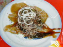 たこふうせん ニノミヤ連島店横 12時〜21時 昨年11月オープン。ず〜っと全力投球で水島で商売されていたママさんが転職。1度きりの人生だから今度はのんびりということで始められたそうです。 6人までならイスと机があります。外で頂けます。 「わかたけ」で研修を受けられたそうです。たこやきを焼いている間以前のお仕事についてまた、人生経験等さまざまな角度からいろんな話を聞かせていただきました。 「人に頼ったら自分が弱くなるからなんでも自分ですれば強くなる」と教えて頂きました。分かっていたようで分かってなかった自分を見つめられてよかったです。人生の先輩の言葉は、一言一言重みがあります。いろんな生き方があるんだなと感心しました。強い女性は頼もしい! メニューはたこやき350円・すじ玉350円・たこもちチーズ430円。各8個税込 大きさは中くらい。たこは巨大。生地に味はしっかりついてます。ソースとあおのりをかけてくれます。マヨネーズとさめても味がかわらずおいしいとの太鼓判です。すじ玉は、たこのかわりにあじつけしてあるすじ(アキレスケンのみ)が入っています。こちらもなかなかあまみがあっておいしいです。たこもちチーズは、たこやきにもち、ちーずをプラスこちらはソース等無い方が素材本来のおいしさが楽しめます。ダイエットたこ焼きを発売予定!乞うご期待。 ホームページを見たことをいわれたら3パックお買い上げの方には1パックプレゼント。季節の惣菜もしています。日替わり限定3パック。150円絶対お得! |